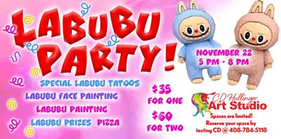 🎉 We’re having a Labubu Party! 🧡 Come celebrate with us and enjoy a day full of painting, tattoos, games, prizes, and pizza! These adorable little Labubu pets will be the star of the show, and we can’t wait to get creative together. Grab your friends and join the fun — it’s going to be a blast!